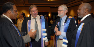 Dans le cadre d’ententes de partenariat entre la Faculté de médecine, l’Université d’État d’Haïti et l’ACDI, Richard Massé, directeur de l’École de santé publique de l’UdeM, s’est rendu le 24 avril dernier à Port-au-Prince pour assister à la remise des diplômes des premiers finissants de la maîtrise en administration et en gestion des services de la santé de l’Université d’Haïti, qui sont appelés à contribuer de manière importante à l’amélioration des soins de santé dans leur pays.