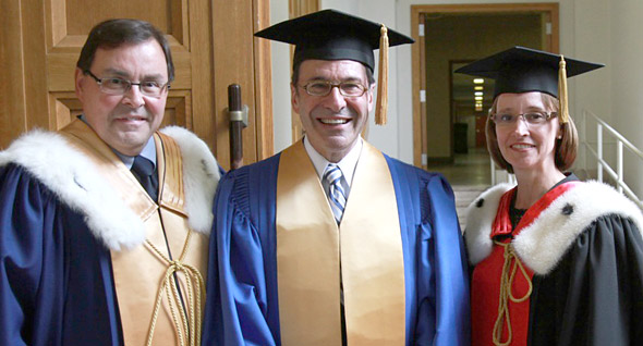 Guy Breton, recteur de l'UdeM, Mark Wainberg et Hélène Boisjoly, doyenne de la Faculté de médecine | Photo: Andrew Dobrowolskyj