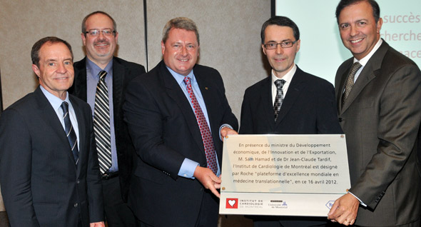 C’est en présence de M. Sam Hamad, ministre du Développement économique, de l’Innovation et de l’Exportation et ministre responsable de la région de la Capitale-Nationale, que l’Institut de Cardiologie de Montréal (ICM) a été désigné aujourd’hui pôle en médecine translationnelle pour l’étude des maladies cardiométaboliques au sein du réseau mondial de la compagnie pharmaceutique multinationale Roche. Cette désignation a été faite par Ronnie Miller, président et directeur général de Roche Canada, et par le Dr David Kallend, responsable mondial de la recherche clinique et directeur médical du groupe Développement des produits chez Roche, à l’occasion d’un dîner-conférence donné conjointement par l’ICM et Hoffmann-La Roche en collaboration avec Montréal InVivo.