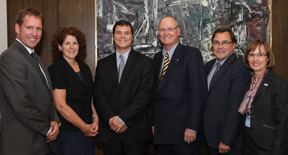La Chaire Myélome Canada sur le myélome multiple de l’Université de Montréal à l’Hôpital Maisonneuve-Rosemont a été lancée aujourd’hui, en présence de Dr Guy Breton, recteur de l’Université de Montréal, Dre Hélène Boisjoly, doyenne de la Faculté de médecine de l’UdeM, Manon Boily, directrice générale de l’Hôpital Maisonneuve-Rosemont, John Lemieux, cofondateur et président de Myélome Canada, Kevin Leshuk, vice-président et directeur général de Celgene inc., Dr Richard LeBlanc, titulaire de la Chaire, Lucie Drapeau, directrice générale de la Fondation HMR et de donateurs ayant soutenu sa création.