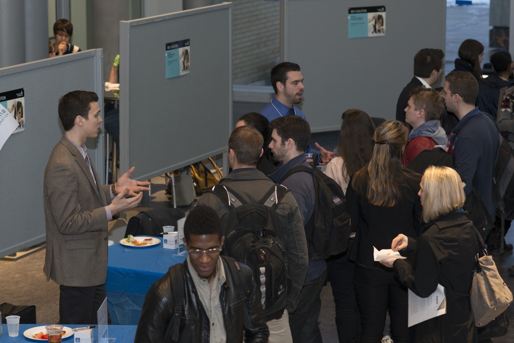 C’est pour cette raison que la Bio-coalition*, forte de son succès de l’année dernière, a de nouveau organisé, le 27 mars dernier, une soirée carrière à l’intention des étudiants de cinq programmes de baccalauréat en sciences de la vie (biochimie, bio-informatique, sciences biologiques, sciences biomédicales et sciences biopharmaceutiques) sous le thème: Le bon emploi : l’art d’être proactif !