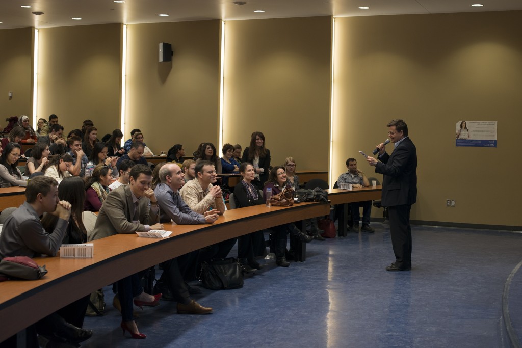 Dans le deuxième volet de cette soirée carrière, dans une atmosphère conviviale et agrémentée de rafraîchissements et amuse-gueules, nos invités répondaient aux questions des étudiants aux divers kiosques installés dans l’agora Morris et Rosalind Goodman. Parmi les questions les plus fréquentes: une maîtrise ou doctorat est-il vraiment utile dans le domaine que je vise? Comment procéder pour se dénicher un emploi dans le domaine pharmaceutique ? Pour travailler dans le domaine de la santé, des cours de psychologie seraient-ils nécessaires ? Comment s’insérer dans un réseau et établir le maximum de contacts professionnels ? Ces questions et bien d’autres trouvèrent réponse, mais pas toujours celles que les étudiants anticipaient.