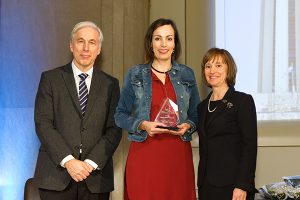 Le Prix engagement social 2016 pour le personnel d’administration et de soutien a été remis à Marie-Hélène Fortin pour son projet de mobiliser une équipe de coureurs de la faculté afin qu’ils participent au Tour Mont-Royal Brébeuf au profit des fonds de dotation du Département de pharmacologie et physiologie et du Département de microbiologie, infectiologie et immunologie.